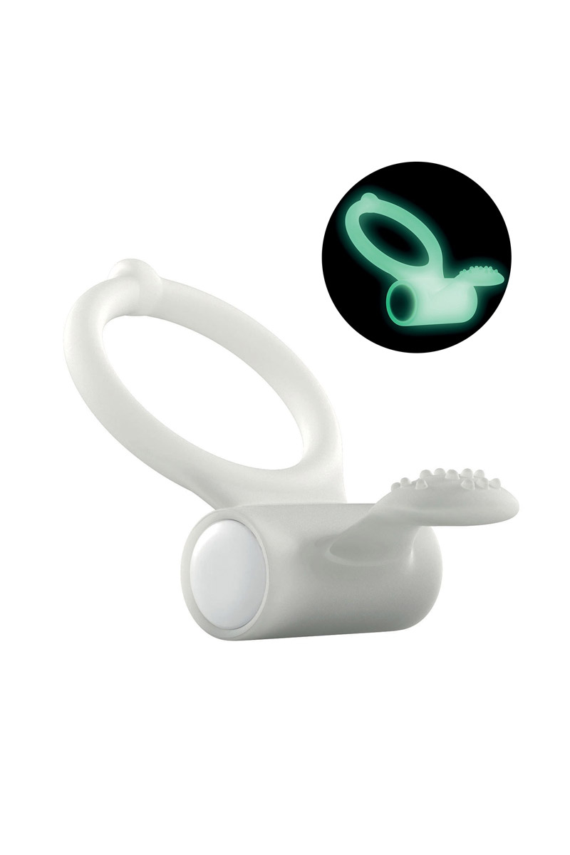 Cockring vibrant en silicone phosphorescent, dédié aux plaisirs partagés. L'anneau maintient une érection de qualité pendant que la petite langue rapeuse stimule le clitoris. Cette version phosphorescente brille dans l'obscurité.