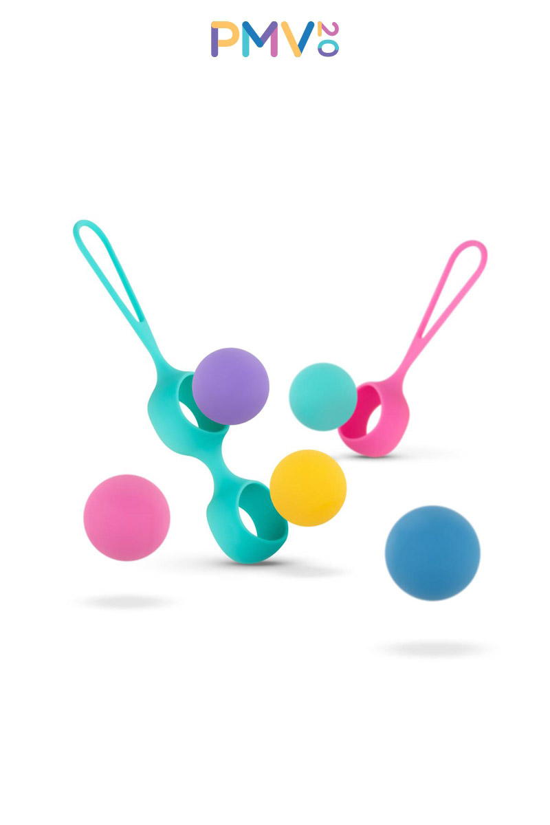 Le kit d'entraînement pelvien Vita de la marque PMV20 est composé de 5 boules de Geisha interchangeables de poids différents et de 2 supports mono et duo pour boules de Geisha.