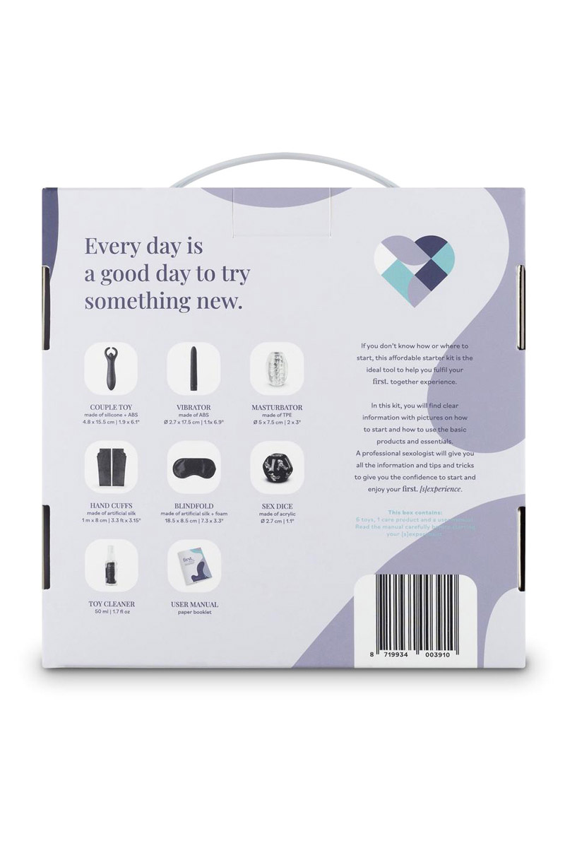 Le coffret découverte des sextoys en couple First experience together, de la marque Loveboxxx, contient 6 sextoys, 1 nettoyant pour jouets intimes et 1 guide sexo.