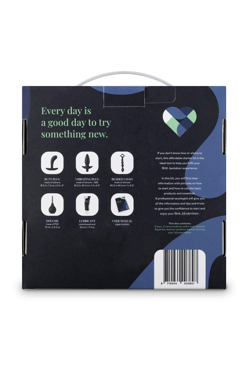 Dédié aux débutants hommes, femmes ou couples en matière de sexe anal, le coffret spécial plaisir anal First Backdoor Experience, de la marque Loveboxxx, contient 4 sextoys, 1 lubrifiant anal et 1 guide.