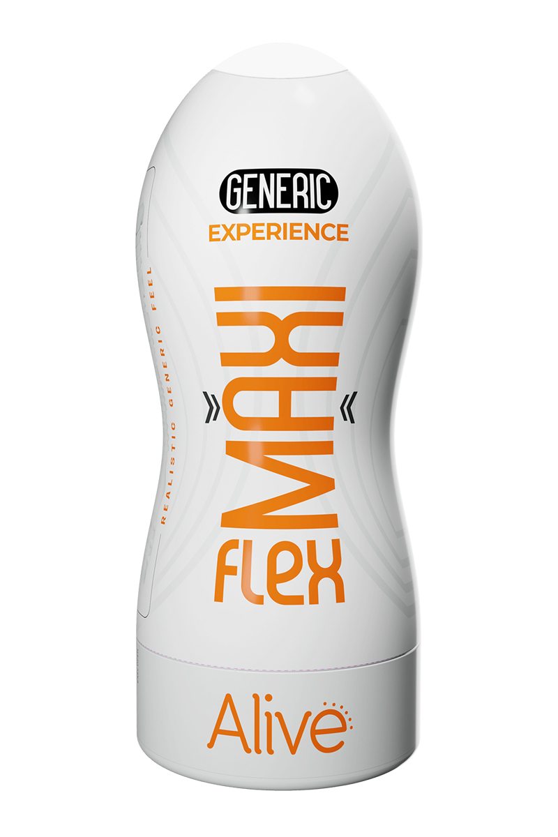 La marque Alive propose Maxi Flex Generic Experience, un masturbateur pour homme grande taille (19 x 7,8 cm), offrant des sensations réalistes, doté d'un orifice neutre.