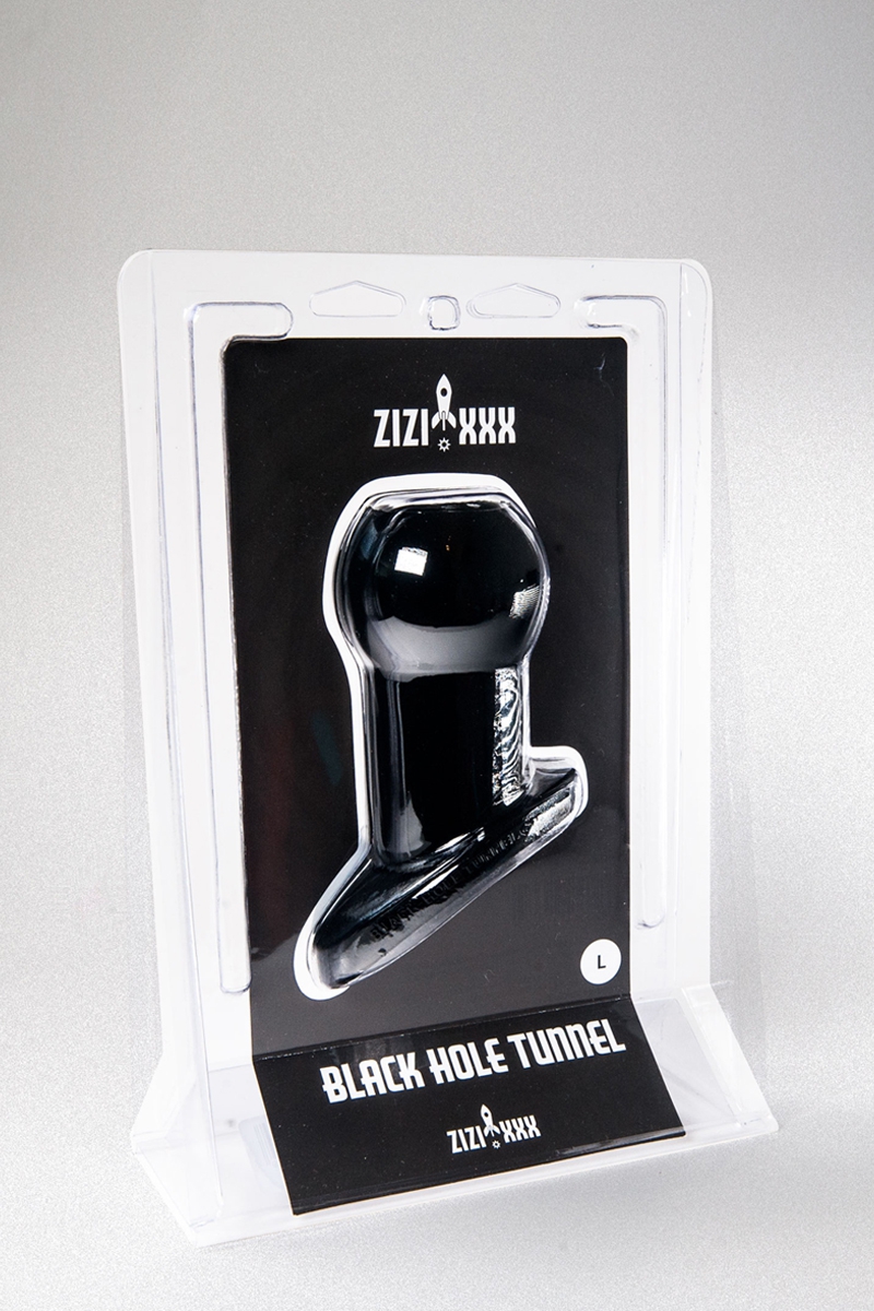 Le ZIZI XXX Black Hole Tunnel L est un plug anal percé en son milieu pour y voir au travers ou pour y faire passer du liquide.