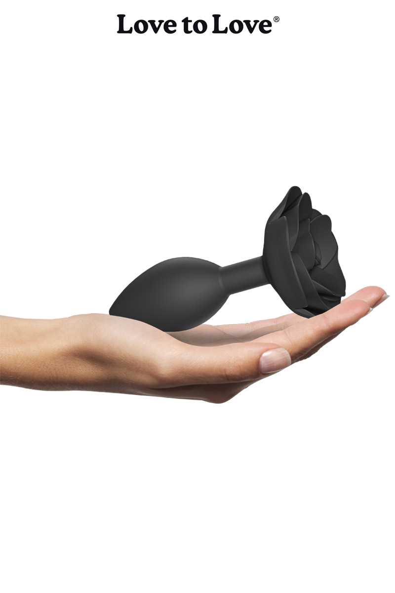 La marque Love to Love propose Open Roses L couleur black onyx, un plug anal 100% silicone, avec une base en forme de rose ouverte.