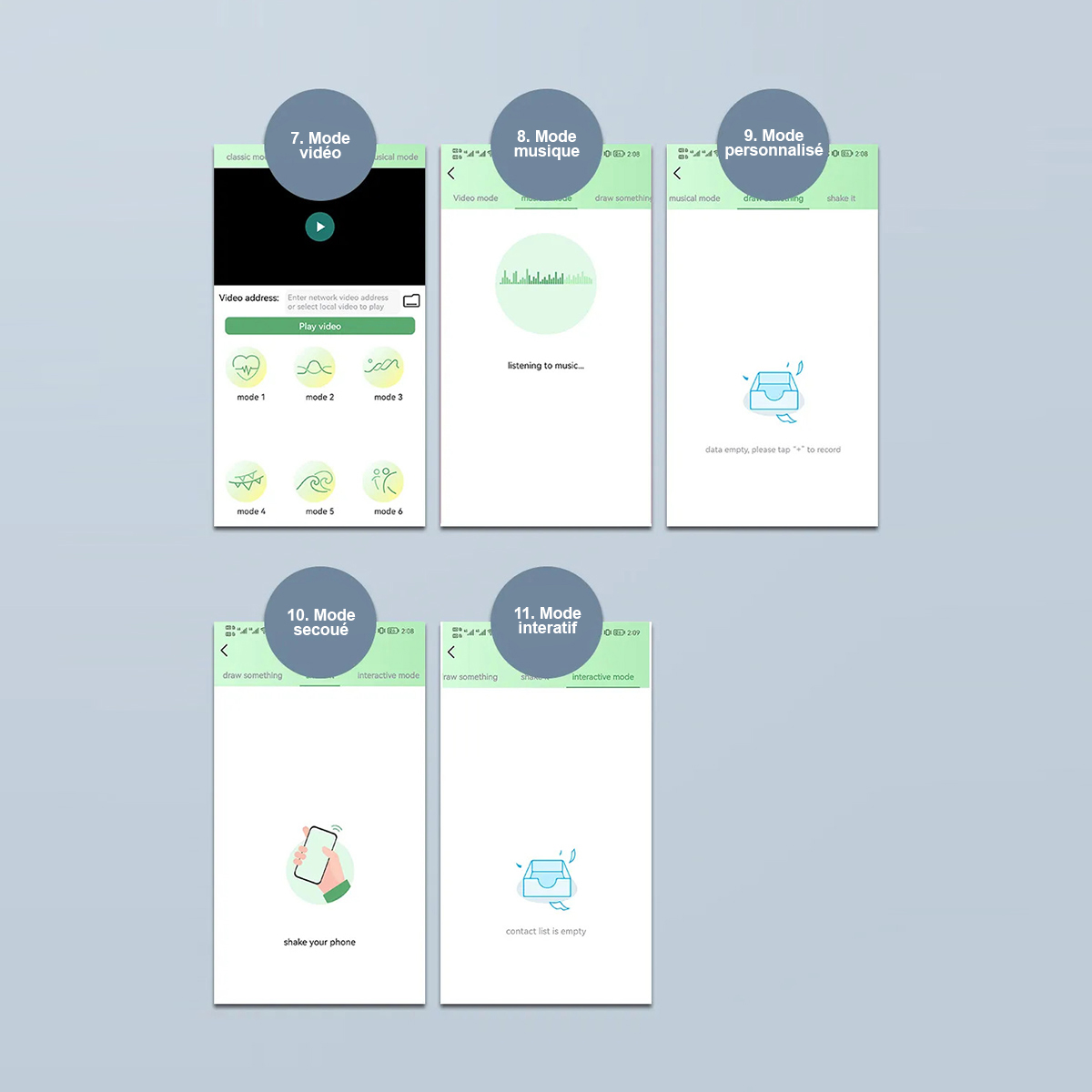 - Différents modes de contrôle des vibrations grâce à l'application mobile