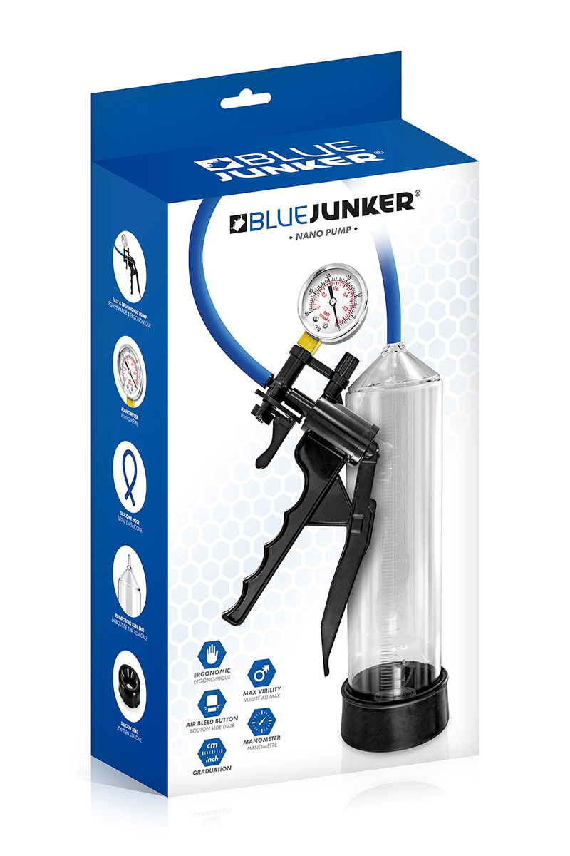 Pompe à pénis de précision, ergonomique, avec manomètre, graduation sur le tube et décompression rapide.