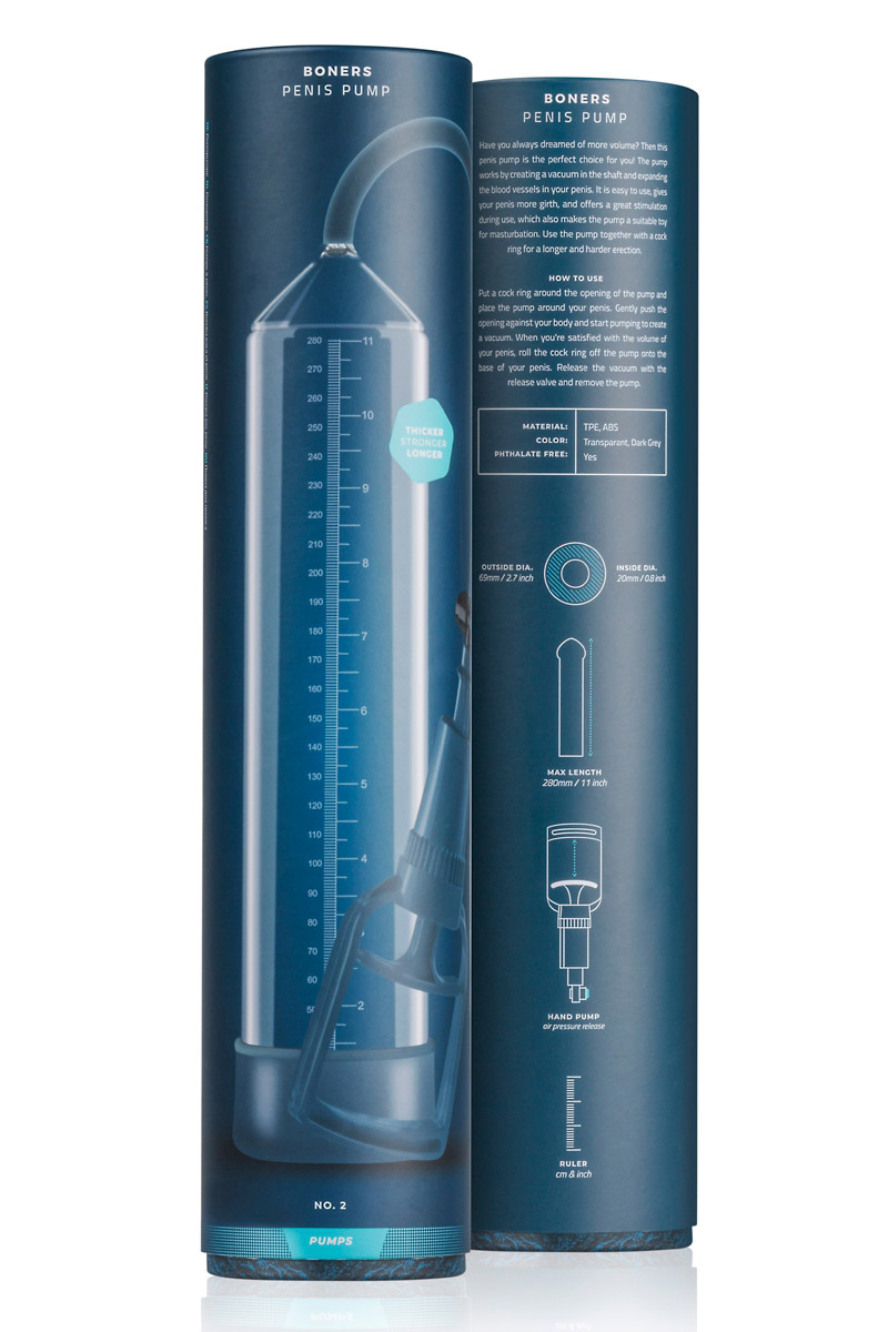 La pompe à pénis N° 2 de la marque Boners est avant tout destinée aux utilisateurs expérimentés en raison de son cylindre de plus grande taille. De plus, sa pompe manuelle est plus efficace et plus puissante.