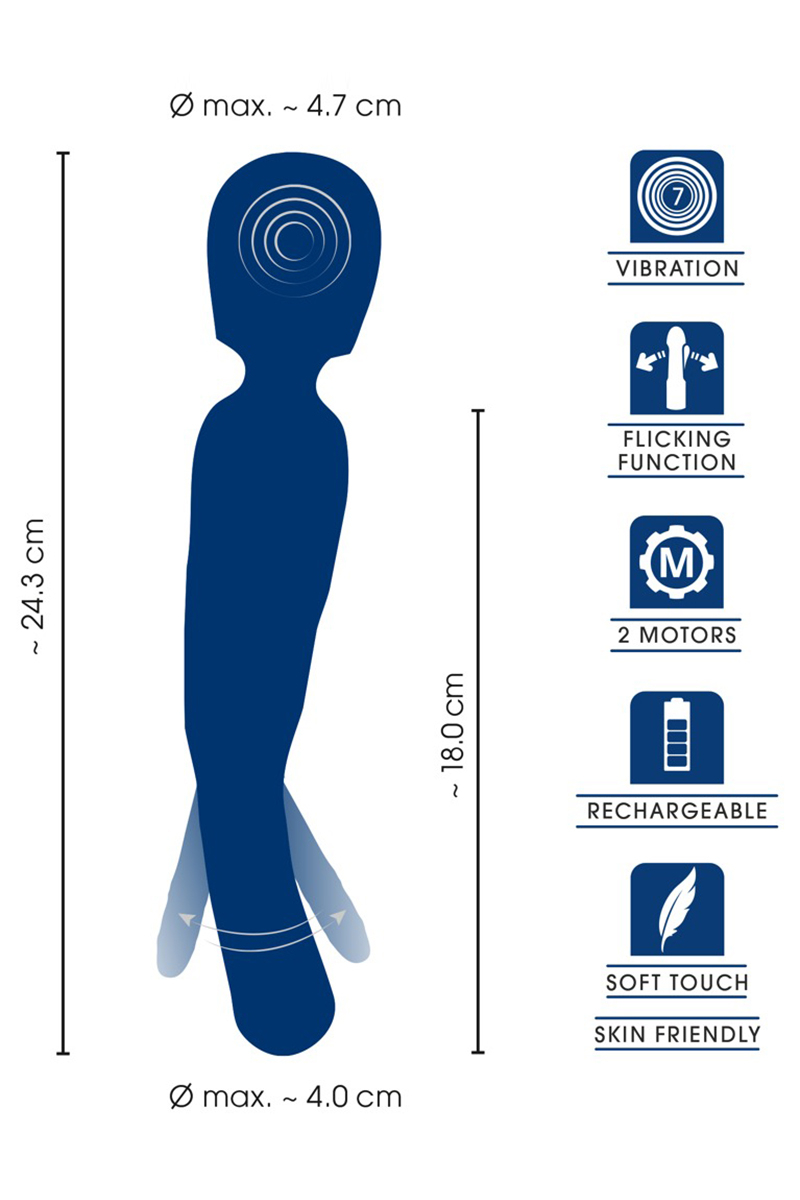 - Longueur totale 24,3 cm, Ø de la tête de massage 4,7 cm
